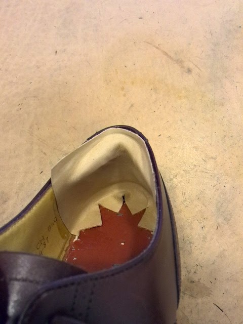 そして、履き口の余っている革を切り取り、インソールを元に戻すと。