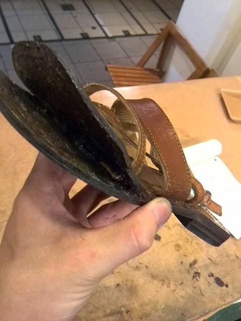 ぐっとチカラのかかる部分が、差し込んで接着だけというのは、実に怖いのですが、サンダルの場合そういった作りの物がほとんどです。